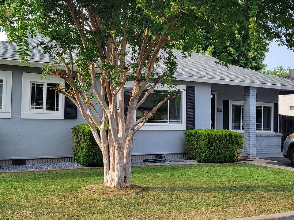 The large backyard is perfect for relaxing or entertaining with a covered patio space, room for a pool and a newer storage shed.