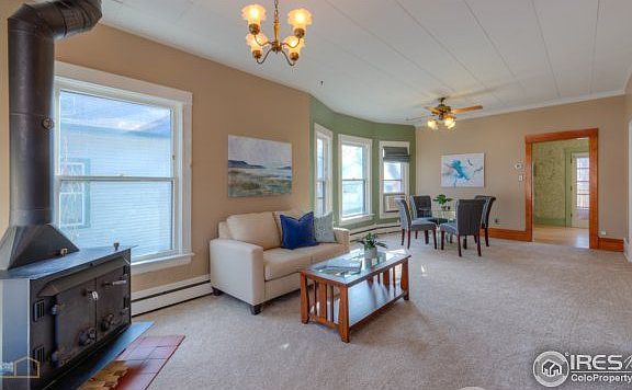Charming, Victorian style, bungalow in Old Town Longmont. This 2 bedroom, 1 bath home has retained many original features and includes new carpet and new appliances. Vaulted ceilings, stand-alone tub, and wood burning stove add beauty. Backyard has large large shed, firepit, and garden area. Extra storage, a small workbench area ,and laundry room are located in the basement. Walking distance to all that Old Town Longmont has to offer: Main Street, parks, schools, breweries! Come take a look!