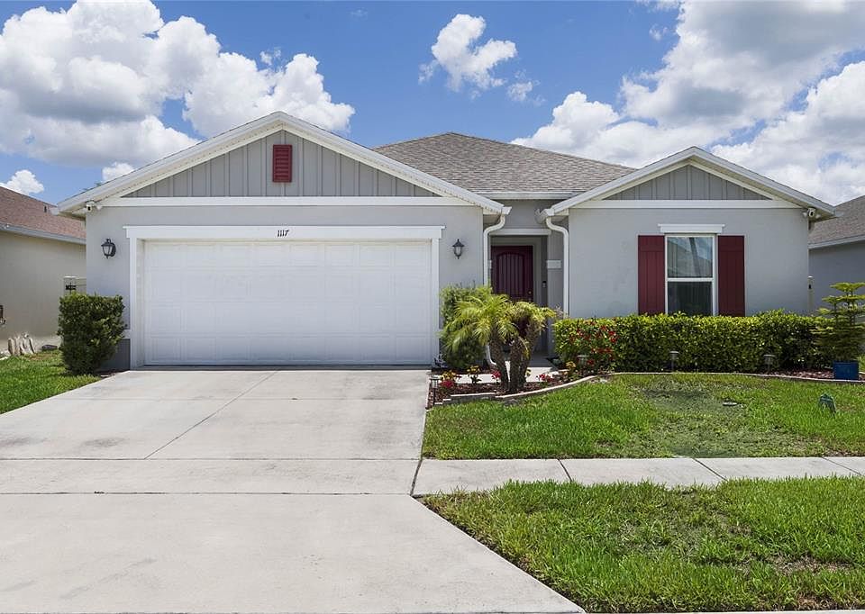 Welcome to this modern and immaculately kept home at 1117 Augustus Drive, Davenport, FL. This stylish residence boasts 4-bedrooms and 2-bathrooms, offering a total of 1983 square feet of living space on a generous 6,120 square foot lot. Step inside to discover a thoughtfully designed interior featuring ceramic tile flooring throughout the main living areas, creating an elegant and low-maintenance space. The vaulted ceilings accentuate the open and airy feel of the home, adding a touch of contemporary charm. The heart of this home is the kitchen, complete with sleek cabinetry, modern appliances, and a breakfast bar for casual dining. The adjoining dining area provides a perfect setting for family meals or entertaining guests. The primary bedroom offers a comfortable retreat with plush carpeting, a walk-in closet, and an en-suite bathroom for added privacy. The three additional spacious bedrooms provide flexibility for a home office or additional guest rooms. Outside, the screened backyard with pavers offers a serene oasis for relaxation and outdoor gatherings. The vinyl fence provides privacy and security, creating a perfect setting for enjoying the Florida sunshine. Convenience is key with a spacious laundry room, ensuring that daily chores are a breeze. This home is a true gem, offering a blend of modern comfort and easy living. Don't miss the opportunity to make this stunning property your own.