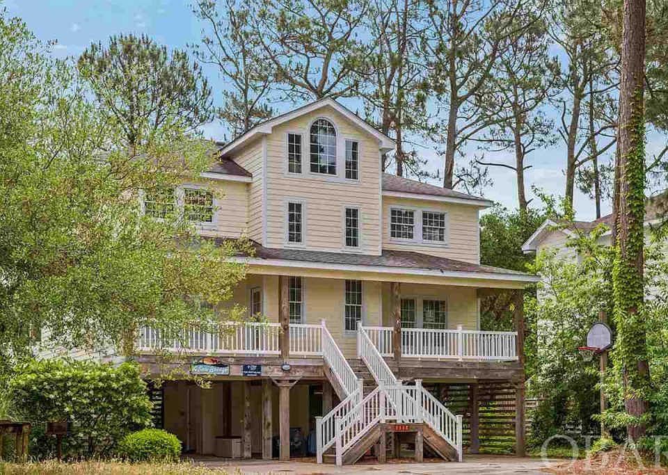 Neat as a pin and spacious, this 5-bedroom, 3.5 bath home will delight the second home or investment buyer. Located in the desirable community of Corolla Light and situated on a wooded lot, âA Sea Breezeâ features a reverse floor plan with open flow between the kitchen and living areas, top floor master en suite, 4 additional guest rooms on the mid-level, and a private pool and hot tub. The cathedral ceilings and abundance of windows allow plenty of natural light into the spacious family room and dining areas on the top level. This area boasts wood floors, a gas fireplace for chilly evenings, access to the sundeck overlooking the pool, and a convenient powder room. The adjacent kitchen has a breakfast bar, ceramic tile floors and lots of cabinet and counter space, giving the family cook room to spread out. A bonus loft/ships watch area provides an intimate space to enjoy the sound views. The Master en suite is located off the main living area and also has access to the sun deck. The private Master bathroom features a double vanity, large jet tub and separate shower area. Four guest bedrooms, 2 full bathrooms and a laundry area are located on the mid-level. This level also provides the two bedrooms access to the large front porch and the other two bedrooms access to the large backside covered deck. A wide ceramic tiled foyer leading straight to the back deck creates an open feel especially when flanked by a tall wall of multiple windows. The ground level offers plenty of parking and storage. Still looking for more room? When this home was built it was designed to easily add a ground level. This property is bright, airy, and turnkey. The owners have maintained the home consistently and itâs apparent. Coupled with the many great amenities of the Corolla Light Resort community such as seasonal trolley service, indoor/outdoor pools, indoor/outdoor tennis, and health club, this lovely home will be a must see.