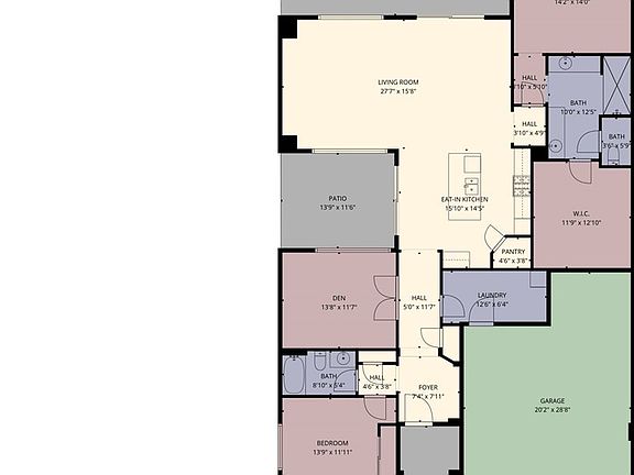 This beautifully appointed residence offers exceptional curb appeal with a paver-brick driveway leading to a tandem two-car garage with epoxy-coated floors, plus a separate golf-cart garage-also finished in epoxy. The main garage includes a valuable 4' extension, providing extra room for storage, hobbies, or larger vehicles. Inside, the home features tile flooring throughout with plush carpet in the bedrooms, office, & living room, offering the perfect blend of durability & comfort. The guest bedroom includes a built-in Murphy bed, adding versatility & space efficiency for visitors.The kitchen is a true highlight with stainless steel appliances, cabinetry complete with hardware, quartz countertops throughout, & a spacious island with bar-top seating-ideal for casual dining or entertaining.Outside, enjoy an impressive large backyard, a full-length covered patio, & an additional side patio with a pergola & electric sun shade, creating multiple outdoor living spaces