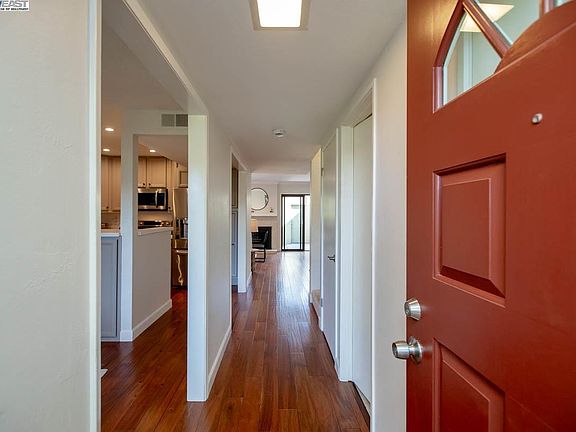 Located in Bay Farm Island's well-established Casitas HOA community, this attractively updated 2-story townhome is literally just minutes to highly ranked schools, Harbor Landing shopping (Safeway/Starbucks), the SF Bay trail and the SF Ferry for a unique and effortless commute into San Francisco. Unusually spacious at 1,628 square feet (per public records), the home features 4 bedrooms, 2.5 bathrooms, a living room/dining room combination, laundry room, an open kitchen/family room, a 2-car garage with custom storage cabinets, and a private patio/garden. Features include crown moulding, dual-pane windows, a fireplace, engineered hardwood floors on the main level, and new light fixtures and a freshly painted interior throughout (both 2025). The kitchen and bathrooms were updated with attractive, timeless finishes and materials. The large primary bedroom has an ensuite divided bathroom plus sliding doors that open to a Juliet balcony and provide a view of the common area's well-maintained and attractive landscaping and pathways. All bedrooms have nearly new carpeting (2021), and closets with custom organizers for plenty of storage. HOA amenities include a community pool, clubhouse, and playground. Enjoy resort-like living from this move-in-ready home in a desirable Bay Farm Island