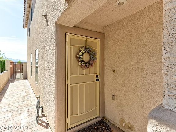 Gorgeous 7-Hills home w/updates t/o. 2-tone paint & tile floors. Bright kitchen w/granite & updated cabinets, SS appliances, & breakfast bar. Shutters, new carpet, M.Bath has updated vanity/quartz counter. Private inground pebble-tech, salt water pool w/resurfaced cool deck. Lot backs the walk trails with Mtn views. Solar screens & alarm system. Gated community with comm pool too. Located near parks & walking trails & zoned for top-rated schools!