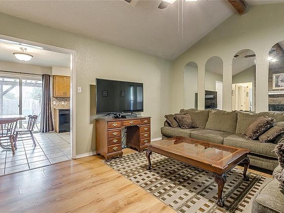 Awesome 3-2 in quiet established neighborhood with formal dining and fireplace. Lots of space in this home for entertaining. Large living area and formal dining divided by brick fireplace. Roomy kitchen with eat in breakfast area. Wonderful window over sink to see into spacious back yard with trees and storage building. You will love the oversized laundry room. Vinyl and tile flooring throughout. This home offers so much for the price. Hurry to see it before it's gone!