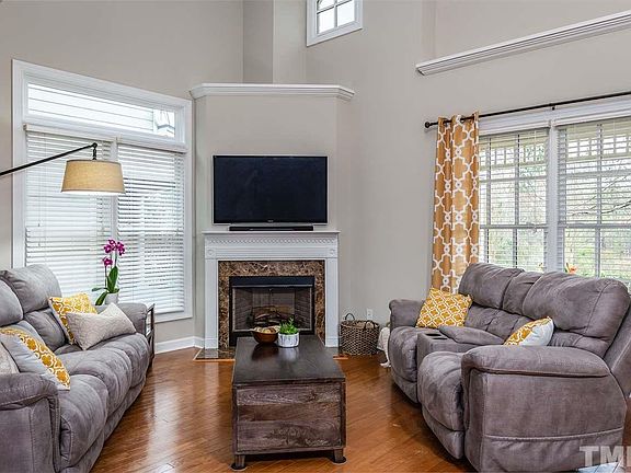 Beautiful, brick front home with open-floor plan in Kitts Creek! 2-story foyer fills spacious living/dining area with natural light. Eng. hardwoods downstairs. Kitchen features granite counter tops, island, tile back-splash & breakfast area. Large secondary bedrooms & over-sized master suite w/ garden tub, separate shower, walk-in closet. Fresh paint throughout. Neighborhood amenities: clubhouse, fitness center, play ground, tennis, community garden, dog-park & social events. Easy access to RTP & 540.