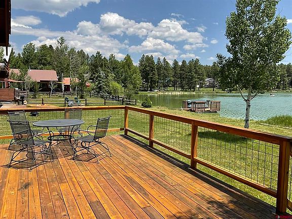If you have been waiting for your opportunity to live lake front in the cutest house around your time has come ! Imagine waking up every morning to beautiful views of our Eastern Range and dazzling Lake Pagosa steps from your front deck! This charming two bedroom home has amazing vaulted ceilings with beams throughout creating appealing light and space throughout the day. Spend your mornings and evenings on the newly finished front deck enjoying all lake life can bring. The adjacent property shares a greenbelt with this home creating more space for both. En suite bathrooms for both bedrooms, one level, open kitchen plan, and carport are just some of the perks this delightful home boasts.Enjoy the proximity to the amenities Pagosa has to offer, the Hot Springs, the Rec Center, shopping, Wolf Creek Ski Area and fantastic dining. Impeccably kept and cared for, this lovely home will win the hearts of anyone who dreams of the cozy Pagosa lifestyle.