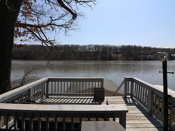 This brick ranch sits right at the waterfront and offers a fabulous Freeman view! Never worry about the roof again with the newer, 100 yr metal shingles! Three bedrooms, 2 baths, and a large great room with a fireplace, wet bar, and lots of glass to check out the lake view. Cathedral ceilings grace the great room and kitchen, and the basement features a family room with a second fireplace. There is an unfinished area for your workshop, storage, or maybe finish it for more living area. Outside you will find a large deck wrapping the lakeside of the house, a second deck, and a double permanent boatlift at the waterfront. A circle drive gives you extra guest parking. This is a sound, solid home, and with some updates you will be ready to host family and friends for tons of lake fun!