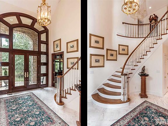 Set on nearly 3 acres,this magnificent estate offers the beauty of lush green lawns & private wooded rear yard.Custom built with amenities including gourmet kitchen opening to family room with granite counters and stainless appliances.Gracious 2 story entry with circular staircase and marble entry foyer.Wood panelled study.Large living and family rooms with vaulted ceilings and floor to ceiling windows. Outdoor dining and entertaining on covered terraces and stone patio.Bonus Rm.stairs by breakfast area.
