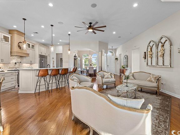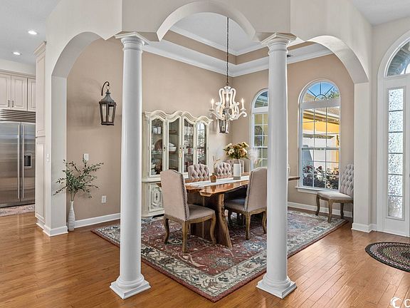Don’t miss this rare opportunity to own this better than new, completely updated 4-bedroom, 3.5 bath home with an oversized 2 car garage on the large 180-acre lake, in the highly sought-after natural gas luxury lake front community of Wild Wing Plantation. Have you ever dreamed of living on a large lake where you can fish from your back yard or boat to the amenities center to enjoy a resort like pool complex/country club with family or friends? Well now is your chance.   The stately front entrance welcomes you into this bright sunny breathtaking home with stunning views of the lake. The Great Room has 11’ high ceilings, hardwood floors, Dolby Atmos surround sound wired/speakers, gas fireplace with antique Charleston double mantle. The Smart TVs in the great room and the master bedroom are encased in decorative custom-built cabinets that can be open or shut to enhance the décor of the home. The formal dining room has a dramatic tray ceiling and large palladium window, that floods the home with natural light.   The gourmet chef’s kitchen includes; professional grade stainless steel appliances including; 36” Wolf Natural Gas range, 48” SubZero refrigerator, Bosh dishwasher, in-wall 2nd oven/microwave, cast stone range hood, high end floor to ceiling custom cabinets, pull out trays, glass insert accent cabinets, with soft close dovetail drawers and doors, luxury granite quartzite honed countertops, solid granite stone farm sink, custom tile backsplash, under-cabinet lighting, two pantries, whole house water filtration system, reverse osmosis system and even an island bar that comfortably seats six.   The Carolina Room boasts 180-degree views of the lake. The home has a split bedroom plan with a spectacular master bedroom suite with views of the lake. Features include; tray ceiling, huge walk-in-closet, steam sauna/shower, copper claw foot bathtub with herringbone porcelain tile tub surround, fireplace, custom vanity cabinets with vanity tower, luxury granite quartzite honed countertops, His/Her sinks, private commode, bidet and porcelain tile floors.   The laundry room has been craft-fully converted into a butler’s pantry, with tiled backsplash, washer/dryer cabinet, and coffee bar. The oversized 2 car garage has additional outlets/circuit breakers and new panel wired for generator, hot tub/spa, garage refrigerator, tool charging station, wine cooler, and garage refrigerator.   The 4th bedroom, with French door entrance overlooks the lake and has been converted into a media room, with Dolby Atmos surround sound and oversize 8’ wide slider that leads to the EZ-Breeze room with outdoor surround sound speakers.   The meticulously maintained .59 acre yard features cement and paved patios, wired for hot tub, two elegant fountains, river rock, and 50 landscape lights. The home has an irrigation system with water conservation nozzles, rain filter and separate meter. Additionally, there is a screened in 12’ cedar octagon gazebo with Cupola. The backyard has a recently painted, full-length seawall/boat dock that was just dredged, and a 8’ wide kayak dock. Use your boat to explore the lakes, fish, take in nature and the SC lake birds, including, blue heron, egrets, native swans and even eagles. Take your boat to the clubhouse to enjoy the many amenities there. Association amenities include large clubhouse, multiple outdoor pools, hot tub, 80’ waterslide, fenced in tennis/pickle ball, basketball courts, playground area, huge day dock, private boat ramp and boat/RV storage. Be sure to have your Realtor ask about the current Wild Wing Golf Club membership promotion! Wild Wing Plantation offers convenient easy access to Coastal Carolina University, shopping, the beaches and all that Myrtle Beach and Conway has to offer. Don’t miss out on this rare find, have your Realtor schedule a showing today!   All measurements and square footage are approximate and not guaranteed. Buyer is responsible for verification. Listing Agent is owner.