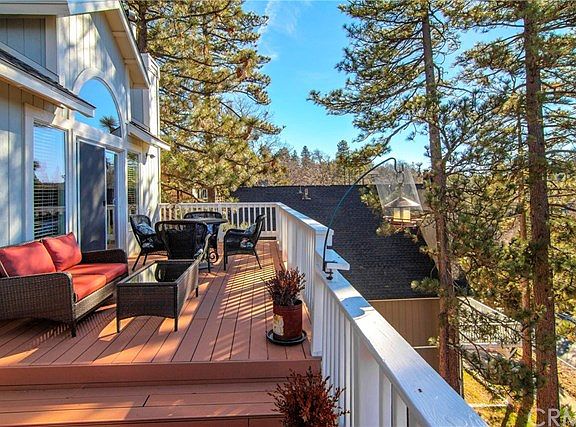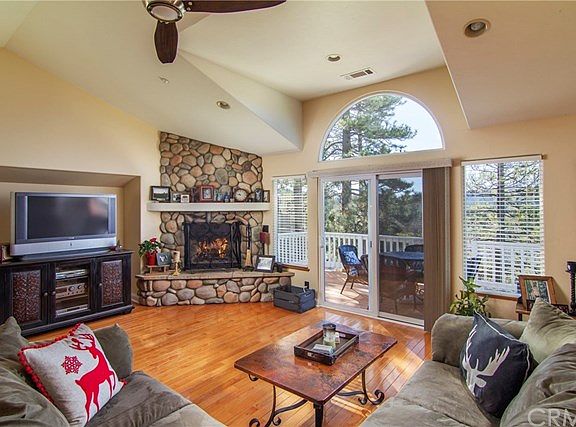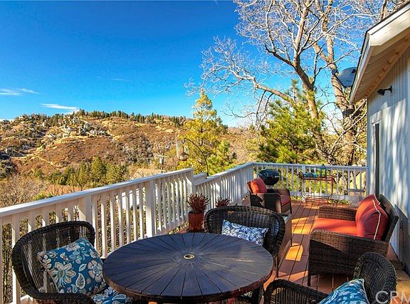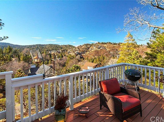 The ultimate mountain-view home just minutes from the lake is ready to welcome you for a new beginning. Hardwood floors, a gorgeous custom stone fireplace, and an oversized deck make you feel right at home in the nature of the immense mountains. The kitchen is spacious with an island for extra countertop space and perfect for stools to have your own little breakfast nook. Bask in the natural lighting that shines in throughout the house, or step right out onto your patio for some fresh air in the morning with a cup of coffee to start your day off. The master bedroom will impress you with its very own balcony that overlooks the mountains and for some late night outdoor relaxation. The master bathroom has all you need with its large shower and dual sinks. If you are absolutely in love with the interior design, it's your lucky day! This home is being offered furnished if you wish, fully or partially. With breathtaking mountainous views and in close proximity to the sparkling Lake Arrowhead, what more can you ask for?
