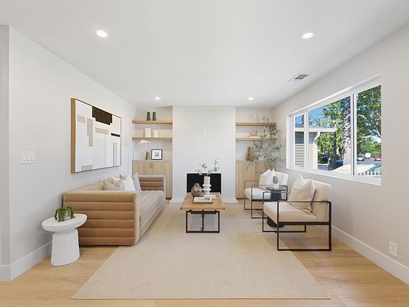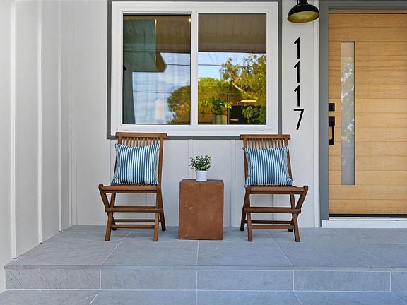 Discover 1117 Henderson Ave, a fully remodeled 3-bed, 2-bath home features laminate flooring and new recessed lighting throughout, guiding you through a bright living room, where a resurfaced micro-cement fireplace creates a sleek focal point. The new gourmet kitchen, boasts black stainless steel Bespoke Samsung appliances, high-end porcelain countertops, a convenient island counter, and cabinetry with ample storage. The primary bedroom offers a private retreat with an en-suite bath and a walk-in closet. Both updated modern bathrooms reflect contemporary style. The home also features new exterior siding, fresh interior and exterior paint, all new interior and exterior doors, and a brand new garage door, ensuring a fresh and modern feel throughout. Outside, a fenced front yard and a modern landscape featuring mulch beds, water-resistant plants, lush turf, and a charming stepping stone pathway and spacious landscaped backyard, offering an idyllic setting for outdoor gatherings. Located just moments from the vibrant downtown Menlo Park, Stanford University, and various local parks like Fremont Park, easy access to dining, shopping, cultural attractions, and outdoor recreation. With easy access to major transportation routes.