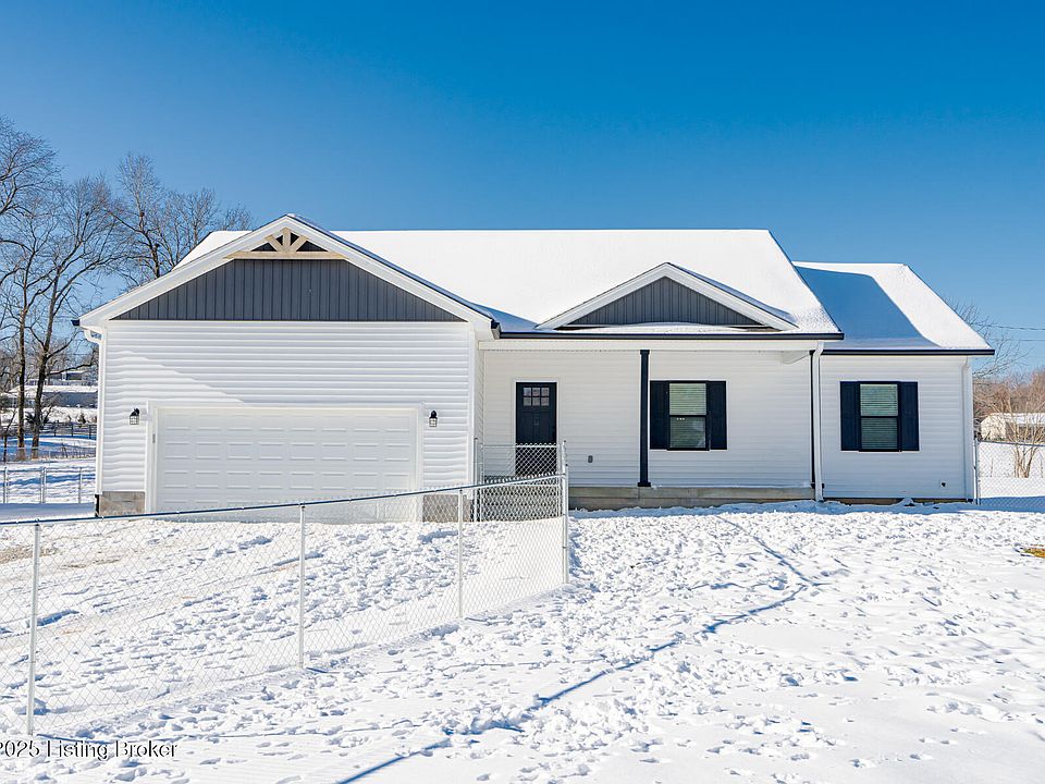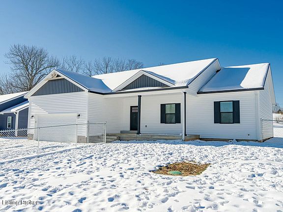 Welcome to 1117 Kirchdorfer Rd in Brandenburg! This 2023-built home offers the perfect combination of modern design, comfort, and convenience. Featuring 3 bedrooms, 2 bathrooms, and an attached 2-car garage, this property is ideal for those seeking space and style. Step inside to find an open floor plan designed for easy living and entertaining. The home is equipped with spray foam insulation for energy efficiency and year-round comfort. Situated on a spacious 0.9-acre lot just outside of Brandenburg, the property boasts a large fenced yard perfect for pets or outdoor activities. Relax and enjoy the views from the expansive covered front porch, ideal for morning coffee or evening gatherings. Conveniently located just 35 minutes from Elizabethtown, KY, and close to Fort Knox, th e BlueOval SK Battery Park, and only 50 minutes to Louisville International Airport, this home provides easy access to key destinations while maintaining a peaceful, rural setting.