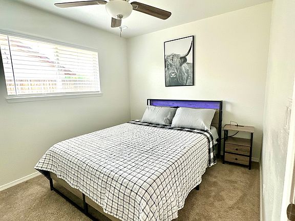 Completely renovated 3-bedroom, 2-bath home with an additional office, located in a quiet cul-de-sac. Recent upgrades include a new roof, granite countertops, custom tile showers, new cabinets, recessed lighting, and skip trowel ceilings. Home features both AC and a swamp cooler for year-round comfort. The exterior offers low-maintenance dryscape landscaping, RV access, and a two-car garage. A move-in ready home with modern finishes in a peaceful neighborhood.