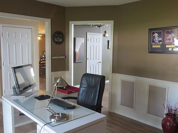Beautiful 1 1/2 story home that sits on the end of cul-de-sac. Charming covered front porch leading into the foyer that opens to the office / living room area. Large 2 story great room with wall window, bookshelves, gas fireplace open to Kitchen with eating area, tile backsplash and granite counter tops. Formal dining room conveniently located off of kitchen. Nice size master bedroom with vaulted ceiling, lovely master bath with separate tub and shower, double vanity and large walk-in closet. Two other bedrooms share a Jack n Jill bath. Two level deck with view of nice backyard. Tons of updates to include: new flooring on first floor, refinished deck, granite counter tops in kitchen, new garage door and motor, new fixtures, ceiling fans, etc. Move-in ready. This is a doll house!