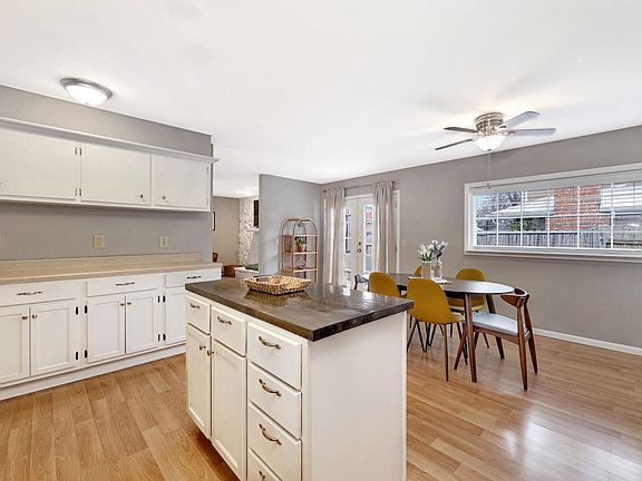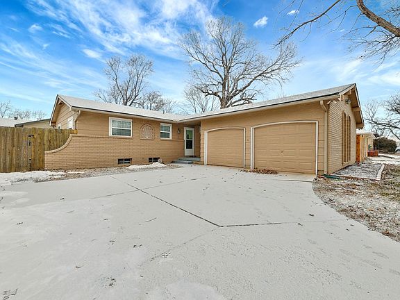 Welcome to this charming and conveniently located home in west Wichita, near 13th & Ridge. This property is ideal for a first-time homebuyer or anyone looking to downsize. The kitchen stands out with its generous size, offering abundant cabinet and countertop space, a pantry, and an island. It also features an integrated dining area, perfect for hosting your next gathering. Adjacent to the kitchen, you'll find a functional mudroom with laundry facilities, including a wash sink, which connects to the two-car garage. Off the dining area, there's a spacious patio on the side of the home, ideal for outdoor relaxation. The south side of the yard provides additional space for parking a trailer or camper as there is a large gate. The main floor living room boasts a whitewashed wood-burning fireplace, creating a cozy ambiance. All windows on the main floor are vinyl, and the trim and doors have been updated with fresh white paint for a modern look. Both bathrooms feature newer vanities and updated tile. Completing the main floor are three well-sized bedrooms. Downstairs, the basement offers a versatile family room, perfect for movie or game nights, an additional non-conforming bedroom, and a large storage room. There's also potential to add another bathroom or bedroom, making this space even more functional. This home is ready to welcome its next owner—schedule your showing today!