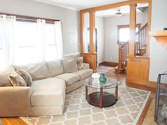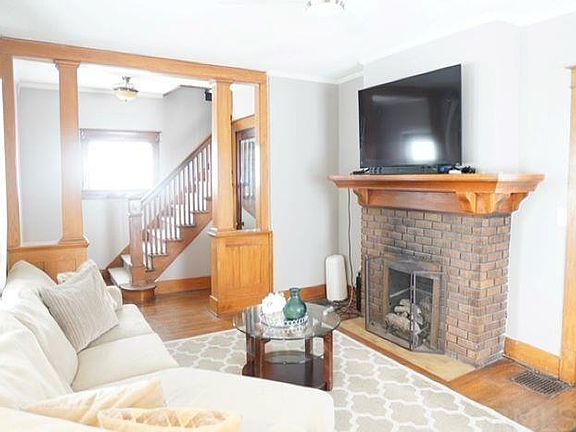This beautiful home has all the charm you've been waiting for. Walking in the front door you are greeted by a beautiful open staircase entryway and pillars leading you through to the impressive living room. Gleaming hardwoods and brick gas fireplace surrounded by original woodwork just to get us started. Follow that around through French doors to the formal dining area with a large built in china cabinet and more gorgeous woodwork. Next to the kitchen which includes all appliances. Now head downstairs to your partially finished basement which includes another access door from the outside. Upstairs includes 3 bedrooms with large walk-in closets and a full bath. Large laundry room that’s includes washer and dryer. Entertaining made easy on the large front or back porch. This home also has a 2 car garage, and plenty of parking spaces. Welcome home!