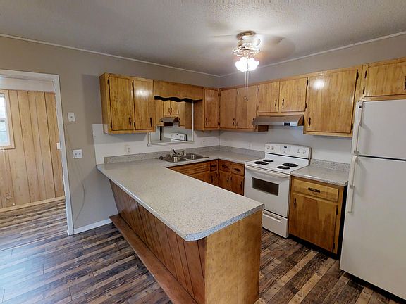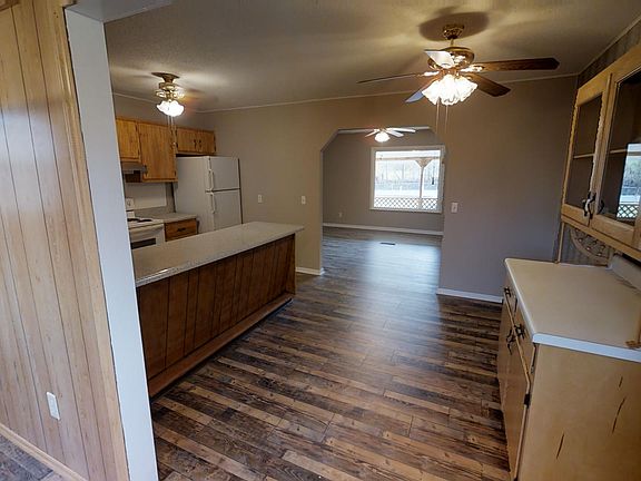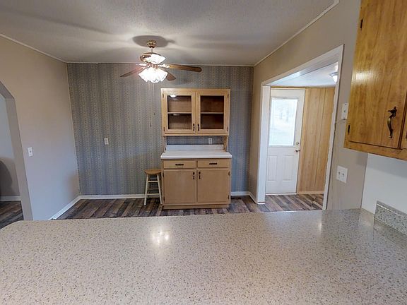 Looking for a home in town, close to Wal-Mart, move in ready and qualifies for 100% financing? This ranch home with a basement has many opportunities. Let the kids play in the fenced yard or play on the full front porch. Outside is kid and/or animal friendly. Inside you will find 2 bedrooms, 1 bath on the main level with new paint, new flooring and W/D hook up added. The basement has a gas stove, a 1/2 bath, W/D hookups, and two additional rooms. Great investment, from the first-time home buyer to the empty nester. Call and check this one out today!