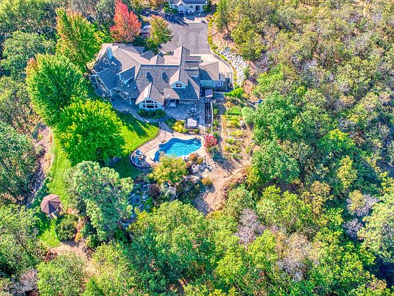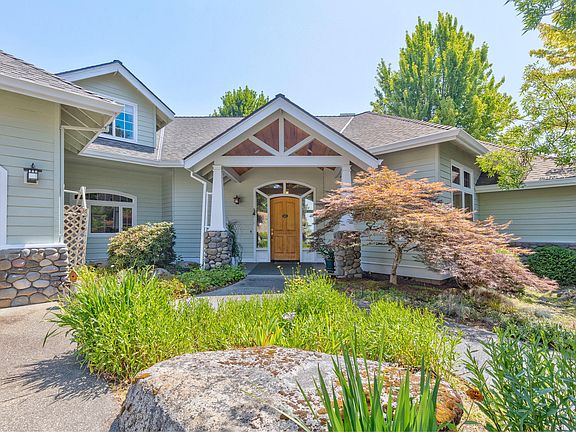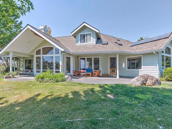 Dreams do come true! Built in 1996 by Dave Adams is this custom executive home on 6.12 acres. Featuring 4 bedrooms, 3-1/2 baths and 3766 sf. Beautiful entry right into the bright living room with wood burning fireplace and picture windows. Vaulted family room, open concept, huge kitchen with island and eating bar, built-ins galore, large laundry room, office space and several access points to the beautiful backyard fitted with top notch outdoor kitchen, pizza oven, swimming pool, spa and outdoor shower. Established garden area includes irrigation, water feature with pond, trails and fort house are finishing touches to the lovely maintained landscape. Detached art studio for crafts or additional living space near by with living room, bedroom and bathroom. RV parking with partial hookups, gated, fenced, solar panels and attached 3 car garage with workshop included. But most of all you have a 280 degree view of the mountains. So many special touches here, you truly should tour this gem