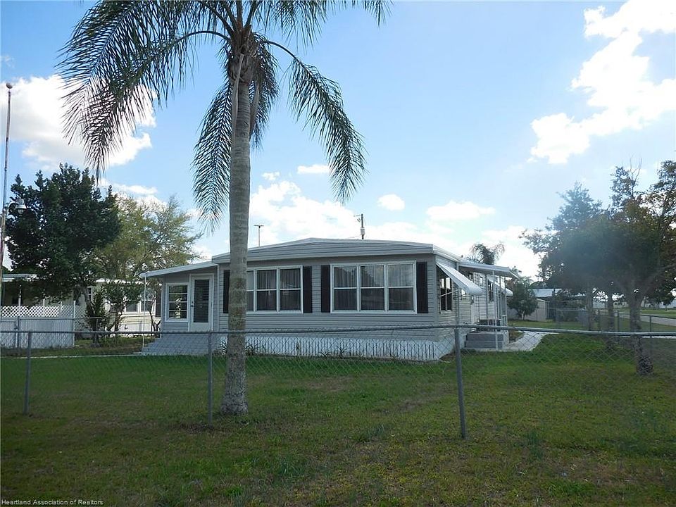 Corner Lot in No HOA Community-no restrictions! Immaculate 2 Bedroom 2 Bath 1972 Manufactured Home with New AC and has a 19'6"x9"9" enclosed porch serves as a Great Room with newer windows (3Yrs. old). Open covered rear porch (8'x10'2". ) Newer A/C, stove and windows, and toilet. Newer Tile in Guest Bath. Large Master Suite with water closet. Lots of storage throughout. Large 8,158 Sq. Ft. (60'x136') Lot with 2 large 2 Sheds (10x10 and 10x10), 1 is a Utility room with Washer and Dryer. Completely chain linked fenced around with oversized gate to double carport (11'6"x25") and yard. Most of the furniture will stay. Room to park your RV and Toys. A Golf Cart ride to Winn Dixie, Many Shops, the Moose Lodge and American Legion.