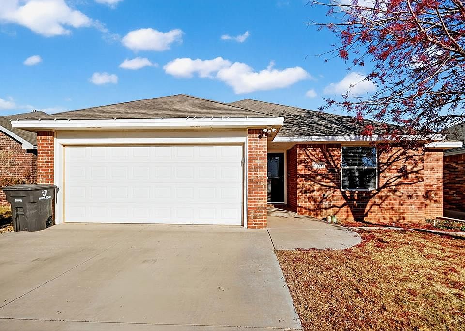 Super cute 3 bedroom, 2 bath home built in 2012 with a functional layout and open living and dining space. The kitchen offers good storage and easy flow for everyday use. The primary suite includes a walk-in closet and accent wall. Stained concrete flooring in the kitchen and bathrooms, with laminate wood flooring throughout the rest of the home. Covered patio and private backyard with sprinkler system, plus a two-car garage. Quick access to Loop 250, shopping, and dining.