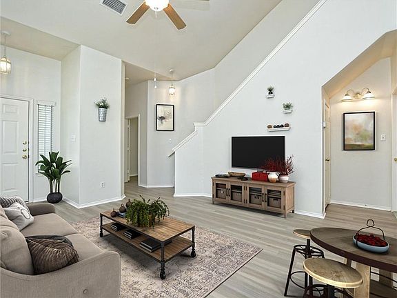 Welcome to this gorgeous two-story home nestled in the sought-after Forest Oaks neighborhood of Cedar Park. Located within walking distance to all three schools, discover your perfect suburban retreat here. The home is conveniently located near major retail, restaurants, and major roads.This home for lease features 3 bedrooms, 2.5 bathrooms, and an attached two-car garage, designed for both comfort and functionality. The heart of the home is the spacious open-plan living area with high ceilings, complete with luxury vinyl floors and large windows that invite ample natural light. The kitchen is bright and spacious with space for a dining area and extensive cabinet space. The owner's suite is a true sanctuary, offering a walk-in closet and an ensuite bathroom with dual vanities, walk-in shower and a tub. With an ideal floorplan that has the primary bedroom downstairs and two bedrooms plus a loft upstairs, this house will appeal to many. The flooring downstairs was replaced with luxury vinyl in 2020 and the house was fully repainted. Step outside to enjoy a private backyard ideal for both relaxation and entertainment. Situated in a vibrant community, the home is just minutes from local parks, pools, and a variety of shopping and dining venues. With easy access to major highways and public transportation, commuting to downtown Austin is a breeze. This home is move-in ready, making it the ideal choice for families or professionals seeking a blend of convenience and style.