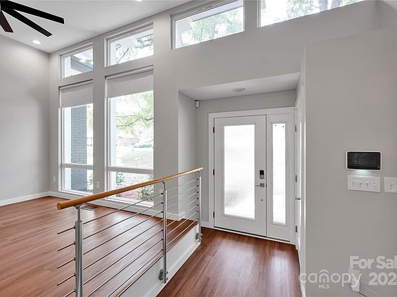 Welcome to this stunning 1-story Modern Home, built in 2018, and one of the newer gems in the neighborhood! This beautifully designed residence features an open floor plan with 3 bedrooms and 2 full bathrooms. One of the standout features is the attached garage, making it one of the only homes in the neighborhood with this convenient amenity! Enjoy outdoor living on the covered porch equipped with ceiling fans and gas line, this allows for easy hook up of an outdoor grill. perfect for relaxing or entertaining! Inside, you'll find contemporary light and plumbing fixtures, adding a touch of elegance throughout. The home comes complete with stainless steel appliances, a washer, and a dryer, making it move-in ready. Convenience is key with a location just a short distance from Uptown Charlotte and South End. You'll be near a variety of restaurants, shopping centers, local breweries, and more. Don't miss the chance to make this beautiful modern home your own. Schedule a showing today!