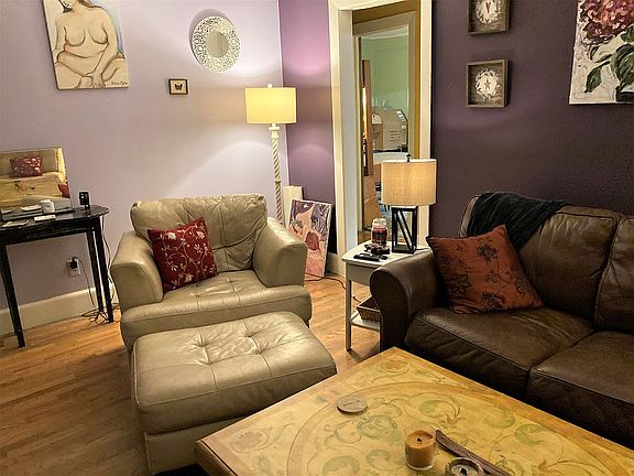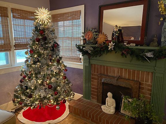 This home has wood floors throughout. A large eat in kitchen with an island & enough space for kitchen table. Front living room with a fireplace. Three bedrooms or rooms to use for your own needs, and full bath downstairs. A large bedroom upstairs and a smaller bedroom off the large one. Long closet and a half bath upstairs with two large linen closets. Closet space in 3 of 5 bedrooms & deep closet off living room. Covered front porch to sit on. Two connected cinderblock outbuildings. Smaller one for lawn mower and tools, plus large outbuilding could be used as a work room/other. Property on the back and side of the house. Covered and uplifted patio off the back, side entry door, just off the kitchen. Carport and off street parking for 2-3 cars.