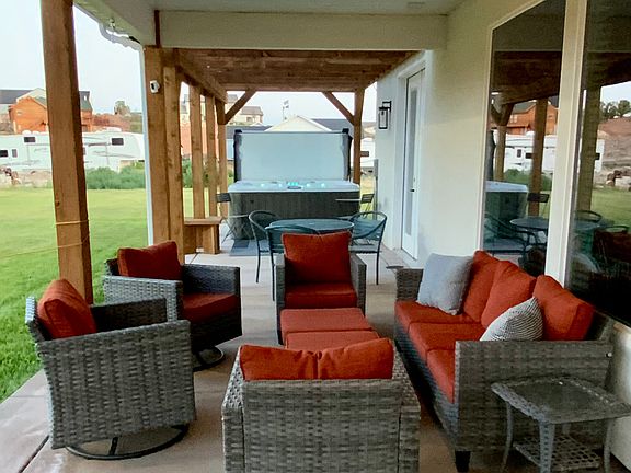 This beautiful modern farmhouse style home sits on a 1 acre lot and is located in one of Kanab's most charming neighborhoods with 360 degree views of red hills. This 5 bedroom, 1 office/bedroom and 4 full bathroom home has plenty of room for everyone. It has both a living and family room for people to gather in. Hardwood floors run throughout the main living area and gives this space a warm and comfortable feel. Outside there is plenty to do. Relax and watch the sunset from your covered front porch, or entertain family and guest on your covered patio out back with the option of playing pickle ball, volleyball, or basketball on your very own private court equipped with night time lights. You may also enjoy roasting food or s'mores in the fire pit.