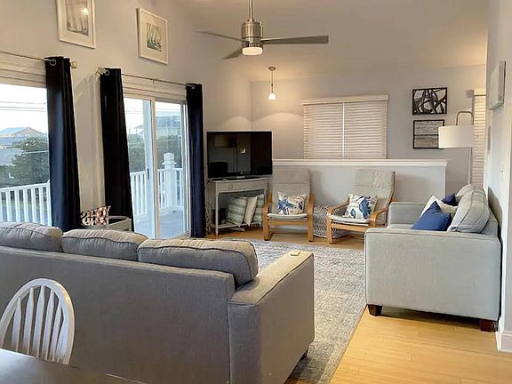 A fantastic place at the beach. A short walk to the beach and to some of the best dining and shopping in Surf City. Everything within 5-10 min walk. 2-Story spacious, fully furnished home with a King Suite, 2 queen beds and a bunk bed. Two levels of deck space, up and down stairs living rooms, outdoor shower and covered parking for 2 vehicles. Storage available Please see photos for layout. Happy to conduct a video tour/walk through. Long term lease only. No subletting.