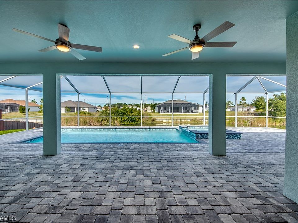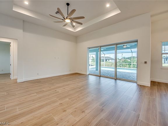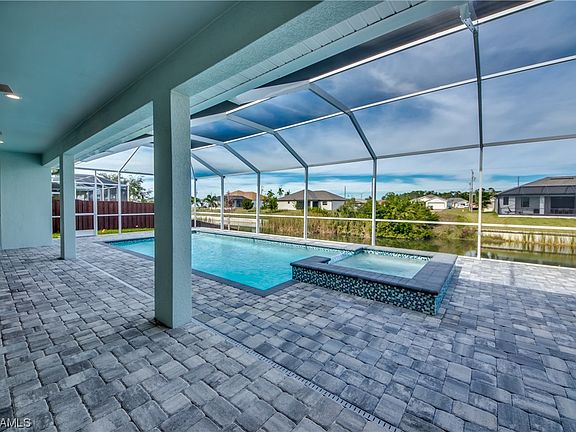SW CAPE - POOL AND SPA - NEW CONSTRUCTION - FRESHWATER CANAL - This 4 Bedroom, 3 Bath, 2 Car Garage home is 2,010 sq ft under air with a total of 4,298 sq ft when you include your Full Length Deck and 1,702 sq ft lanai with an oversized Heated Salt Water Pool and Spa with Automation System! The Kitchen has been decked out with 42" All Wood Cabinets, Stainless Steel Appliances, Quartz Countertops with Tile Backsplash an huge Kitchen Island. Oversized Natural Wood Look Tile installed throughout the home and Bathrooms giving you a clean and nice look throughout! Energy efficient Impact windows, doors and sliders is a huge benefit and feature of this home! This home has a Paver driveway/pool deck, complete landscape package with sprinkler system and flora tan sod. The interior specs are 12’ Ceiling in living area, 8' doors, 5 1/4" Baseboard with 3 1/4" Casings, Soffit lighting outside, Frameless Glass Shower Enclosure, Stand Alone tub in the master bath, Trey Ceilings in the living room and master bedroom, pendant lighting in the kitchen, pool bath, Light and Fan Package along with Window blinds and so much more. This home has city water and sewer already installed!