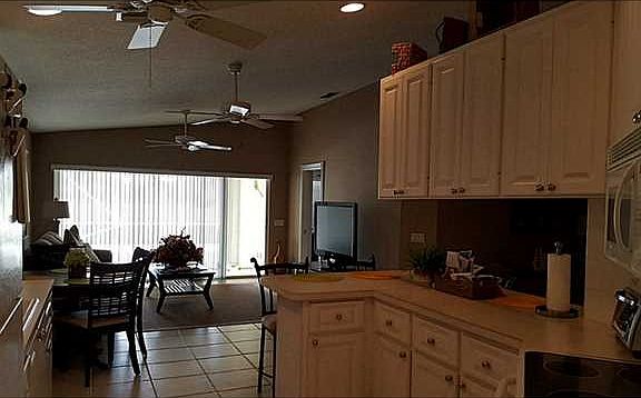 Wish you were here? T-H-E PERFECT SPOT! Enjoy everchanging panoramic lake and golf views from your extended screened lanai or covered patio are sure to please. This well maintained DiVosta Capri has a freshly painted exterior and interior. Easy care tile flooring in living areas and bedroom. Striking wall unit to display your treasures. Walk in closets and other spacious storage areas. Coated garage floor. Accordion shutters. Buyer is responsible for paying $600 Capital Contribution at closing. Move in ready! MOTIVATED SELLER!