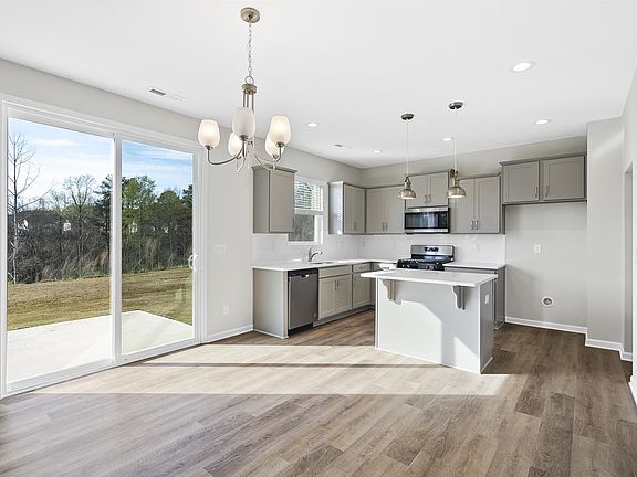 Pond View! Backs to wooded area! 1st Floor Flex Space! Hardwood Style Floors in Main Living Areas & Hardwood Stairs w/ Open Railing! Kitchen: Gray Painted Cabinets, Quartz Countertops, Custom Painted Island w/Breakfast Bar & Accent Pendant Lights, 3x6 Brick Laid Tile Backsplash, SS Appliances Incl Gas Range, SS Single Bowl Sink, Recessed Lights & Large Pantry! Open to Breakfast Nook! MasterSuite: w/Trey Ceiling & Ceiling Fan w/Light! MasterBath:Tile Floor, Dual Vanity w/Cultured Marble, Custom Cabinets, Walk In Shower w/Glass Enclosure & Transom, Huge Walk in Closet! FamilyRoom: Slate Surround Gas Log Fireplace w/Custom Mantle! Mud Bench!