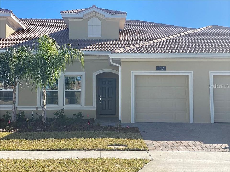 Come live in a resort style community in Champions Gate the most desirable community in the area. this is brand new 2020 built gorgeous villa, 3 bedrooms, 2 bathrooms, built in walking closet, large master bathroom, one card garage, as well as a spacious laundry room and covered lanai. it is an energy efficient villa with 42 inch kitchen cabinets, quartz countertops in kitchen and both bathrooms, stainless steel appliances, Energy star SS appliances plus washer and dryer, security system. There are TWO ClUB HOUSES ACCESS! amenities include: Fitness center, Golf Course, Playground, Splash Park.