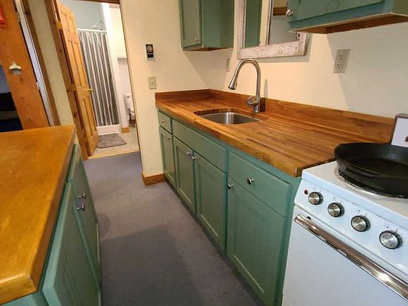 Adorable efficient condo with modern updates. Kitchen island with butcher block top, fresh paint, and an updated bathroom with quaint pedestal sink. Great location to enjoy the Carrrabassett River, town park, mountain biking, hiking, and minutes to Sugarloaf.