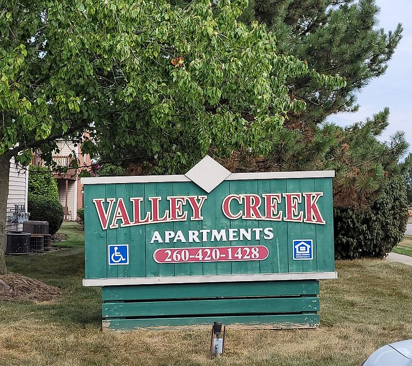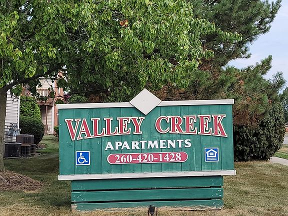 Valley Creek Apartments Located near Exit 329 from I-69 in Auburn Style: lower level apartment Bedrooms: 2, Bathrooms: 1 Appliances included: refrigerator, stove, dishwasher, washer, dryer Utilities included: water Tenant utilities: gas, electric Heat type: gas furnace Lawn care included: yes Amenities: central air, playground Pets welcome: No Lease Terms: 12 months, renters insurance required