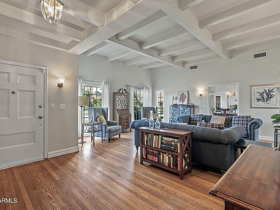WOW!A historic home on a double lot (nearly 1/2 acre) in the exquisite Encanto Palmcroft Historic District with a terrific ''livability'' factor!The large living and dining rooms have soaring beamed ceilings, glowing wood floors & elegant large windows while the family room has a vaulted ceiling and a bank of french doors opening to a spacious patio overlooking the lush yard,sparkling pool & ramada.Each of the four bedrooms has direct access to a bath plus a 1/2bath for guests.The eat-in kitchen has loads of cabinet and counter space w/ two sinks,breakfast bar & pantry.The breakfast room can double as an office! The finished basement features custom built-in cabinetry and can accommodate a pool table plus a separate workshop/craft/exercise/costco storage room. Truly a must see property!