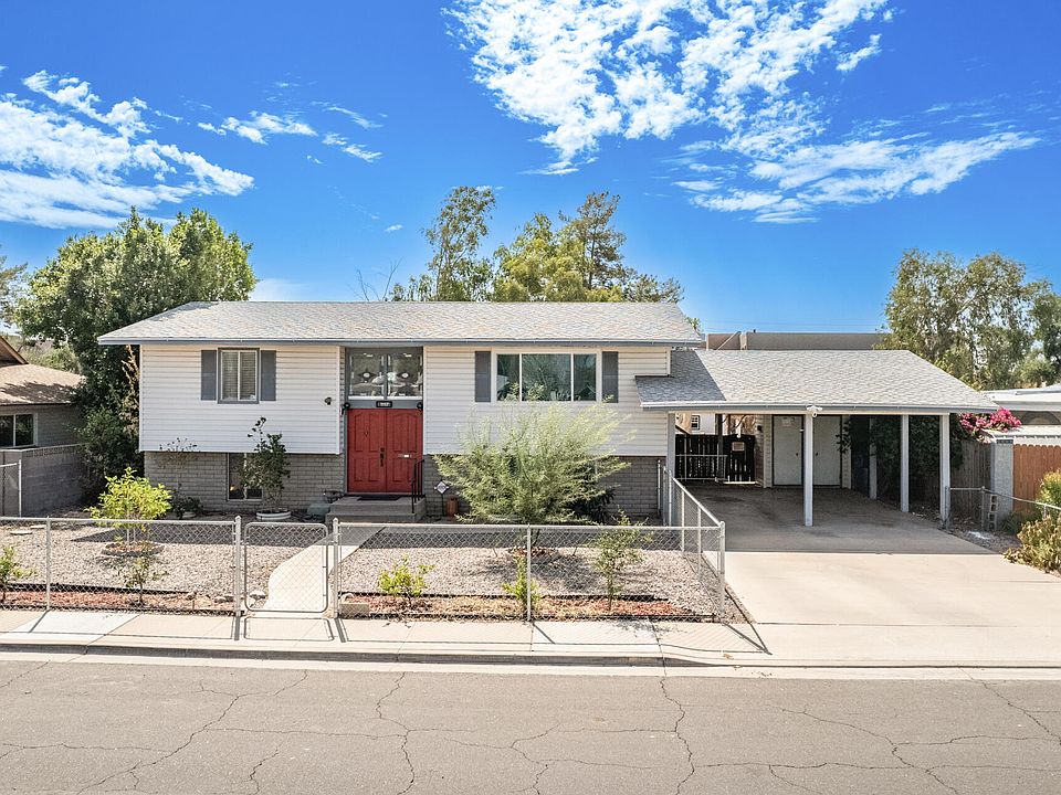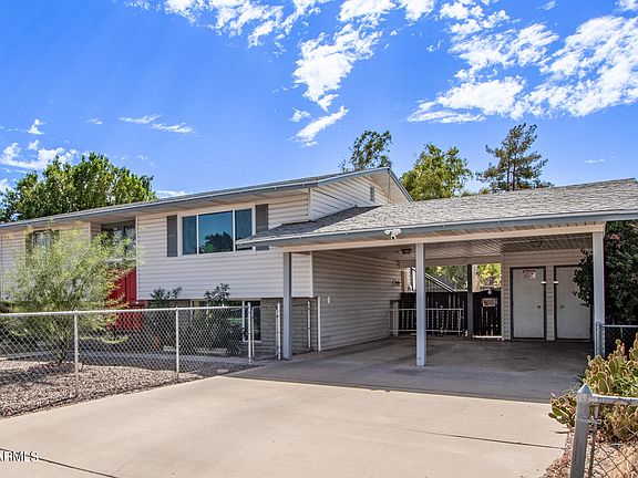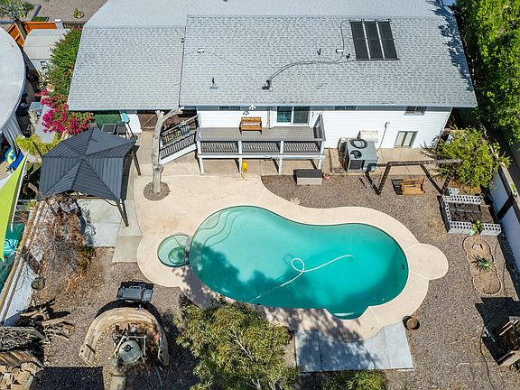 Welcome to this spacious 5-bed, 3-bath gem that seamlessly blends style and function! This property promises a blend of privacy and ease with a huge low-maintenance fenced yard. Elegant wood-look luxury vinyl flooring throughout the home. The remodeled kitchen boasts granite counters, flat-panel cabinets, a stylish tile backsplash, new SS appliances, and a peninsula with a breakfast bar. Upstairs boast a generous great room and two bedrooms. Retreat to the cozy main bedroom, accentuated by ceiling fans and a private bathroom, ensuring comfort. 3 generous bedrooms are located downstairs. The backyard offers a balcony, a covered patio, and a gazebo and a sparkling diving pool. You'll also find a convenient storage shed. Extra storage available in the carport area as well.
