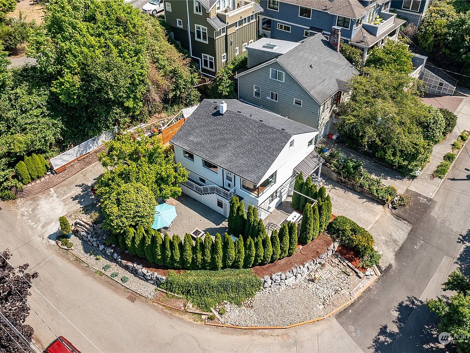 Tucked above Queen Anne, discover charm-filled living with this mid-century bungalow! Corner lot zoned LR1 M brings a spacious appeal w/ an abundance of parking with two driveways! Quality build by Hurich Schiessl with recent updates including a new roof, freshly painted inside & out, plumbing, sewer line, windows & much more! Lovely new granite counters, stainless appliances & custom cabinets in the kitchen all tied together with Brazilian cherry hardwood floors. Lower level is a flexible haven w/ 2nd kitchen, laundry, bath & separate entrance. Outside patio space beckons for summer soirees. Easy access to DT & South Lake Union. Finished attic not accounted for in sq. footage!