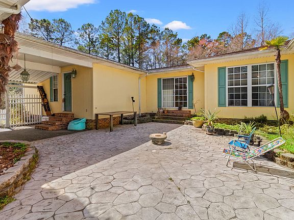 Ready to make your dream of owning a home in a peaceful and serene country setting a reality at an affordable price? Look no further. This charming country retreat features an inviting courtyard that welcomes you into the heart of the home. Surrounded by fruit trees, including persimmons, apple, peach and fig that are already producing fruit, and a serene, wooded back lot, you'll enjoy unmatched privacy and tranquility. There are also plum, pear, pecan, and paw-paw trees that are 7 years old and should start producing fruit in the upcoming years. The floor plan was designed with privacy and comfort in mind. The expansive owner's suite is a true sanctuary, offering soaring high ceilings, a private entrance, and a spacious sitting room to unwind in comfort. On the opposite side of the home, two large secondary bedrooms are located in their own wing, with a convenient sliding glass entrance from the courtyard and through the spacious second living room/family room, as well as a full bathroom. The soaring cathedral ceilings in the main living room, breakfast nook, and owner's suite give the home an open and luxurious feel, while the many floor to ceiling windows bring in natural light. The kitchen opens up to a breakfast nook on one side and a flex space that could serve as a formal dining room on the other side. The sunroom is the perfect setting for relaxation all year long. Nestled in the Beaver Dam community in the Francis Marion National Forest, you'll be just 15 min away from shopping, restaurants and a hospital in Moncks Corner, 30 minutes from Goose Creek and Cane Bay, and less than 40 min to Mount Pleasant; yet the peace and quiet will make you feel like you're worlds away. This area is also a boater's paradise. Lake Moultrie and the Cooper River with their boat landings and beaches only 15 min away. And with no HOA and plenty or yard space, you can keep your boat, RV, and any other toys right at home. A few cosmetic updates would help this home reach its full charm and character and create instant equity. With plenty of space and privacy, this estate offers a rare combination of luxury, comfort, and peaceful country living, making it the perfect retreat to call home. Don't miss out!