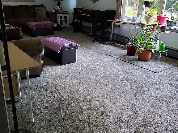 Quiet setting, sprawling space! This well-maintained ranch on nearly half an acre will check so many of your boxes. The solid brick exterior, long driveway, and mature trees surrounding the property set the tone. Once inside, you'll appreciate the separate living areas and open flow of the kitchen and dining area. The front living room has a bright bay window and new carpets. The three bedrooms, including one with an attached half bath, rest off the hallway. At the heart of the home sits the updated eat-in kitchen with backsplash & maple cabinets and the spacious family room with exposed beams and cozy stone fireplace. Access the covered patio with stone ledge through the sliding glass doors. Fenced yard, garden shed, & great spaces to landscape. Roof in 2016. Schedule your showing today!