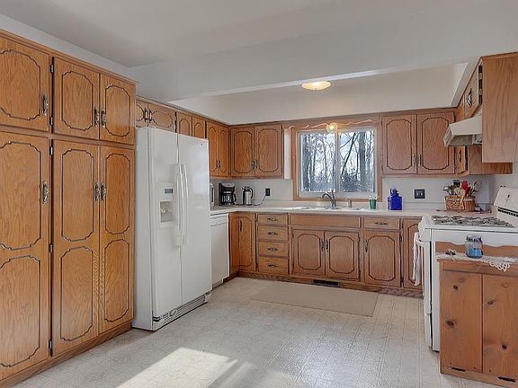 Briggs Lake Chain walk out rambler on 1.79 wooded acres and 24x50 foot garage is the perfect place to lead the life you deserve. Lake living in a country setting, you will most appreciate the vast window scape, enormous wrap around deck and 4 season sunroom. Home has multiple living spaces, enormous master bedroom, lower level that can double as an in law apartment or a fully equipped entertainment space with a kitchenette.