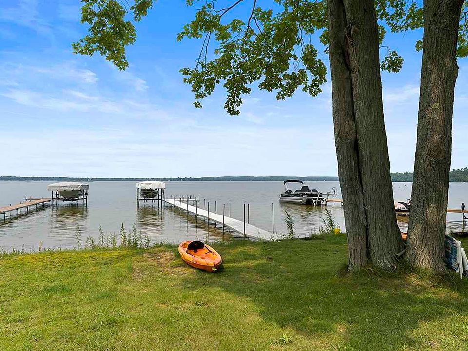Wonderful lake views from this Douglas Lake cottage, just a short walk to renowned Douglas Lake Bar. The home is located on Maple Bay and is being offered with a boat, hoist and dock, for immediate enjoyment of the lake. The lot is deep, 504 feet, with space to expand the cottage, or build a garage. The fishing boat has a new, 40 horse Honda motor. This cottage was recently hooked up to natural gas. Douglas Lake has been monitored extensively by the U of M Biological Station, which owns about 40% of the land surrounding it. It's maximum depth is 80 ft. This home is a short drive to Pellston Airport, 20 minute drive to the Straits of Mackinaw, Petoskey or Harbor Springs.
