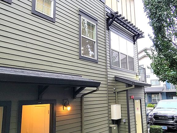 Open great room floor plan with high ceilings, walls of windows. W&D included. New carpet, light fixtures, fireplace tiling, dish washer, and clothes washer! Quartz countertops, tile backsplash, stainless appliances. Two en suite baths. Gated community, pool, club house. Steps to Clackamas Town Center, theater, restaurants, and light rail.
