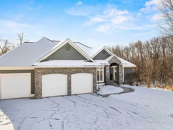 Welcome to 111703 Turtle Ridge Rd. Discover unparalleled luxury in this exceptional six-bedroom, four-bath ranch with a three-car garage, situated on 39.5 partially wooded acres with breathtaking 3600 feet of river frontage. A grand foyer welcomes you into the home, seamlessly connecting the formal dining room, living room, and kitchen. The open-concept living room features vaulted ceilings, a stunning view of the backyard, and a cozy wood-burning fireplace. The kitchen boasts quartz countertops, high-end appliances, ample cabinetry, and a charming breakfast nook. The split floor plan includes a spacious laundry room with a dog wash station, with a washer and dryer included. The expansive main bedroom suite offers a full bath with double sinks, a tiled walk-in shower, a Jacuzzi tub, and a huge walk-in closet. On this side of the home, conveniently located off the garage entrance, you'll find an additional walk-in closet, a utility closet, and a built-in coat and sitting area. On the other side of the home, there is a large bedroom with a walk-in closet and a full bath. An open staircase leads to a finished family room featuring a built-in bar with a refrigerator and dishwasher, along with an entertainment center equipped with a TV and stereo system. The lower level also includes four additional bedrooms and two full bathrooms, one of which is an ensuite. The home offers ample storage options and features in-floor heating on the lower level, which walks out to a park-like backyard. The beautifully and professionally landscaped grounds include a fireplace area, creating an ideal setting for entertaining or relaxing while enjoying serene river views. Located at the end of a dead-end road, this private retreat seamlessly combines luxury, functionality, and natural beauty. Don't miss your chance—call today to schedule your personal showing!