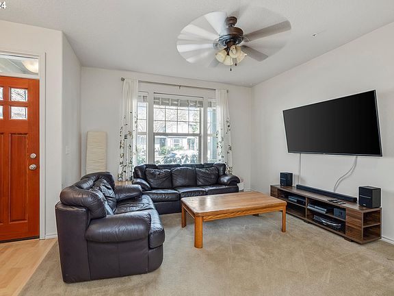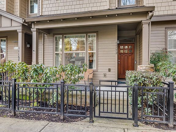 Outstanding townhome in Villebois! Beautifully maintained and move-in-ready. Charming wrought iron gated entry and a covered porch. The open layout features a corner gas fireplace in the great room, a cheerful kitchen with tile countertops, laminate flooring, a walk-in pantry and a dining area. There are ceiling fans and portable A/C units in the bedrooms. The loft offers soaring vaulted ceilings and a skylight with abundant natural light. The beautiful primary bathroom has double sinks, a soaking tub, luxury vinyl flooring and a spacious walk-in closet. The HOA dues include 1GB fiber internet. Enjoy all of the incredible Villebois Amenities!