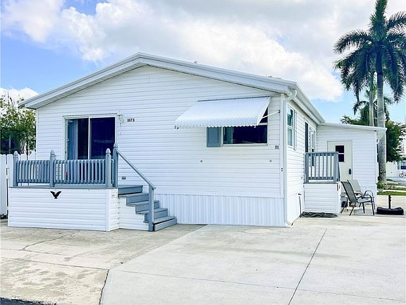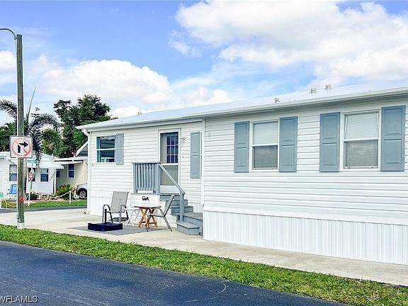 Priced to Sell! Own your slice of tropical paradise! This 2-Bed, 2-Bath open-concept home offers affordable living close to beaches, restaurants, shopping and all that Southwest Florida has to offer. Great Corner lot with extra space and view of the expansive lawn area. This freshly painted home offers NEW in 2023– AMS Metal Roof, Luxury Vinyl Flooring & Carpet, Refrigerator, Dishwasher, Garbage Disposal, Washer/Dryer, and Primary Bath Toilet. Home has full cement under structure with new skirting and partial siding. Also boasts New Vapor Barrier and Duct Work with Large Attached Shed for bikes and beach toys. 2017 AC with new motor. No FLOODING in the home from Hurricane Ian or any recent Hurricanes. Pine Ridge Palms is a 55+, quaint community with many activities and inviting carefree lifestyle. Motivated Seller!