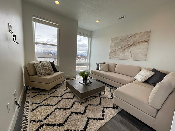 This BRAND NEW modern townhome has 2 bedrooms, 1.5 bathrooms and a ground floor flex (perfect for an office, home gym, or hobby room!). Located down the street from the new county library and upcoming city center and less than a mile away from TRAX station, Oquirrh Lake and SoDa Row. Appliances (side by side refrigerator, LG washer & dryer, and dishwasher) and blinds included. One car finished garage with additional parking in front of the house. HOA amenities include high speed fiber optic internet (CenturyLink), and access to Daybreak Community Center Gym, pools, tennis courts, boats on Oquirrh lake, etc. HOA handles yard care and snow removal. One Year Lease. $2500 deposit plus $2500 first month's rent to move in. Owner pays HOA fees, which include fiber optic internet, access to Daybreak pools, community center gym, tennis courts, etc. and yard maintenance. Renter is responsible for utilities: water, sewer, power, gas. NO smoking of any kind permitted.