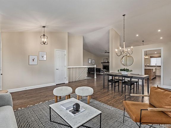 Exquisite ranch remodel backing to Open Space! This delightful home has undergone thoughtful renovations throughout. The main level features vaulted ceilings, luxury vinyl plank, and a fully equipped chef's kitchen. The light and bright living space is open and airy; a custom chandelier is a focal point of the large dining area, which has plenty of room seating 8-10. The kitchen is truly an entertainer's delight. A large, quartz island is the focal point of this stunning kitchen which includes a farmhouse sink, 42" shaker style cabinetry with soft close drawers and pull outs in most cabinets, a custom range hood, and a pot filler behind the stove. No detail was left out of the kitchen space; you'll love making this a gathering space with friends and family! A cozy family room with gas fireplace provides additional space to relax or entertain. The oversize primary bedroom with en suite overlooks the backyard and Open Space. Double closets offer plenty of room for clothing and storage. The Primary en Suite has also been fully remodeled; double sinks, a separate standing shower and large, soaker tub bring luxury to this space. A secondary bedroom space, office space (no closet) and additional 3/4 and 1/2 powder bath (all updated) complete the main level. The fully finished basement offers two additional bedrooms, a family/flex/craft space, kitchenette, and 3/4 bathroom. Light and and bright, modern finishes are the theme of this home. It's 100% move-in ready! A low-maintenance backyard with a tiered trex deck, mountain views, and Open Space complete the property. Imagine sitting on your back deck with a mountain and open space view! Just 10 minutes from downtown Arvada, the location makes getting to the mountains OR to Costco convenient.This simply stunning home has been well-loved and cared for; schedule your showing today!