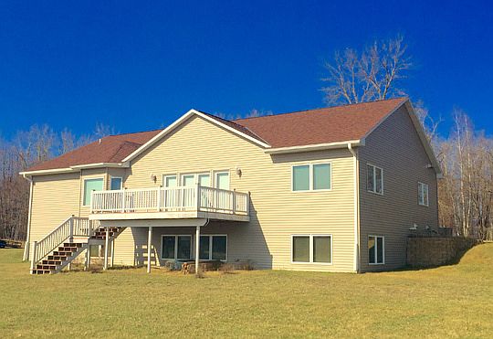 Newer 3 bedroom, 2 bath, peaceful country Rambler on 8 acre lot. Vaulted ceilings in living room, open floor plan. Beautiful-private views of the country side. Large master suite with walk in closet and large bathroom, w/dual sinks. Insulated and heated garage! Third bedroom on lower level. LL is unfinished, but studded out with a rough-in for third bathroom. Huge maintenance free deck on back of house. Steel siding. Nice 32x40 shop! Home has dual heat.