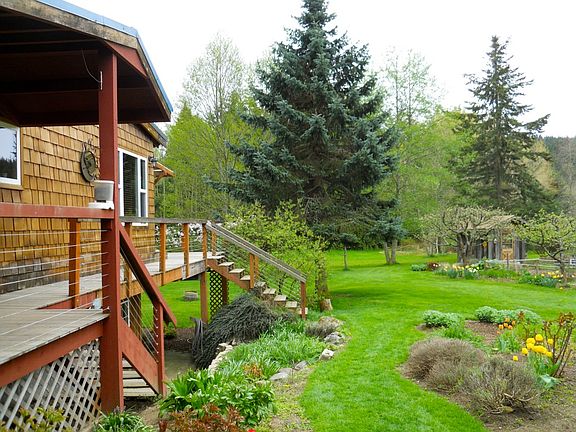 Home Sweet Home is Back to the Earth, a charming, renovated country home at the end of Happy Valley Road tucked away on a 1.5 acre fully developed mini-farm just 4 minutes from town. Warm, sunny lawns separate fertile gardens planted in veggies and commercially grown flowers bordered with apple trees and rhubarb. 5 outbuildings including guest cottage, pump house & shop, garden shed and garage/carport enhance the property. The hot tub under the grove of fir provides soaking & relaxation.